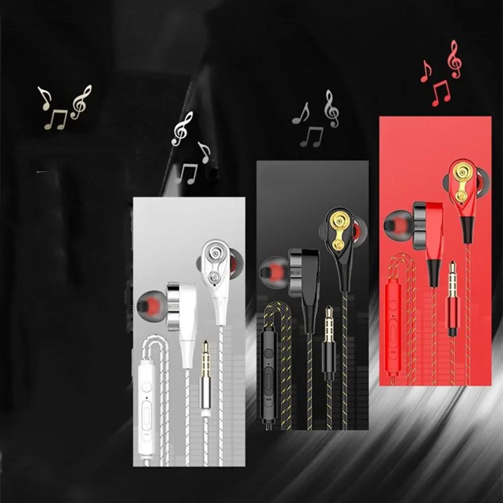 HUADELAI 3.5MM Dual Drive Stereo Wired Earphone In-ear Headset Earbuds Bass Earphones For Sport Gaming with Microphone