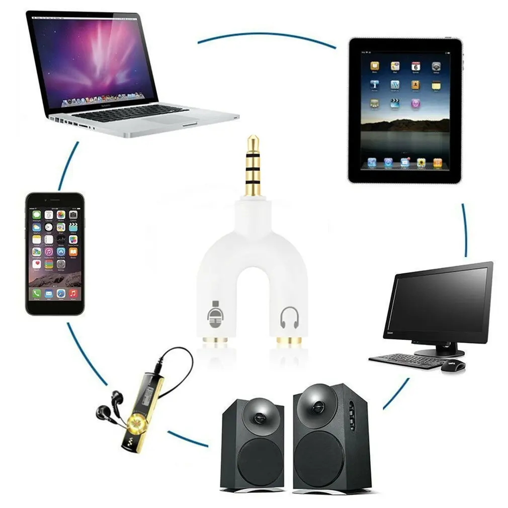 3.5mm Splitter Stereo Plug U-shape Stereo Audio Mic & Headphone Earphone Splitter Adapters for PS4 PC Laptop Ear Headset