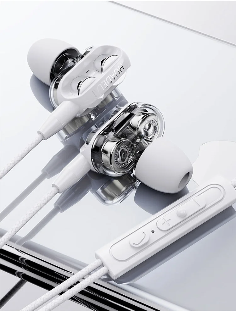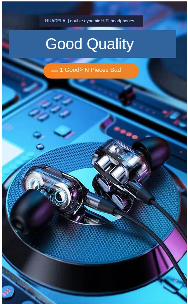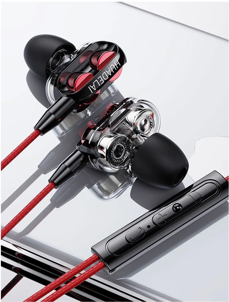 Special Price for HUADELAI 3.5MM Dual Drive Stereo Wired Earphone In-ear Headset Earbuds Bass Earphones For Sport Gaming with Microphone