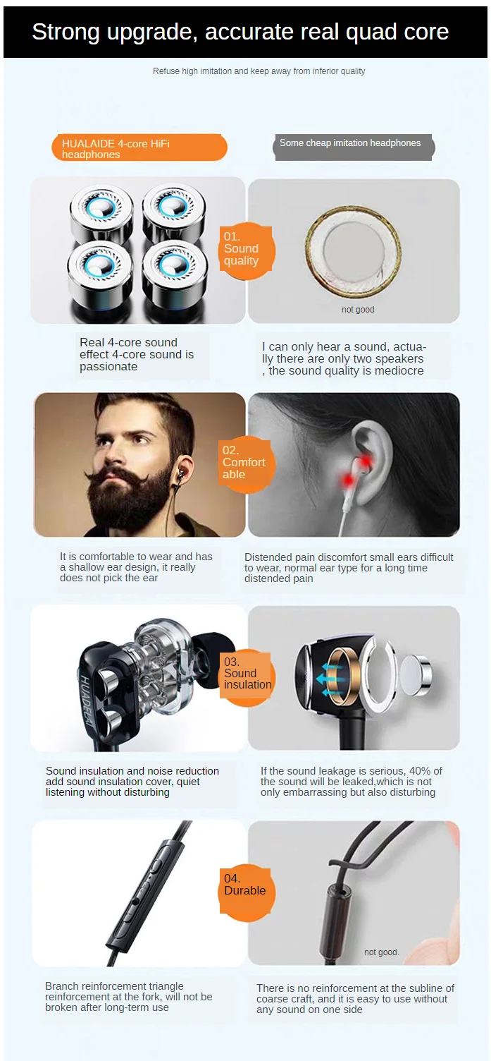 Addition Information of HUADELAI 3.5MM Dual Drive Stereo Wired Earphone In-ear Headset Earbuds Bass Earphones For Sport Gaming with Microphone