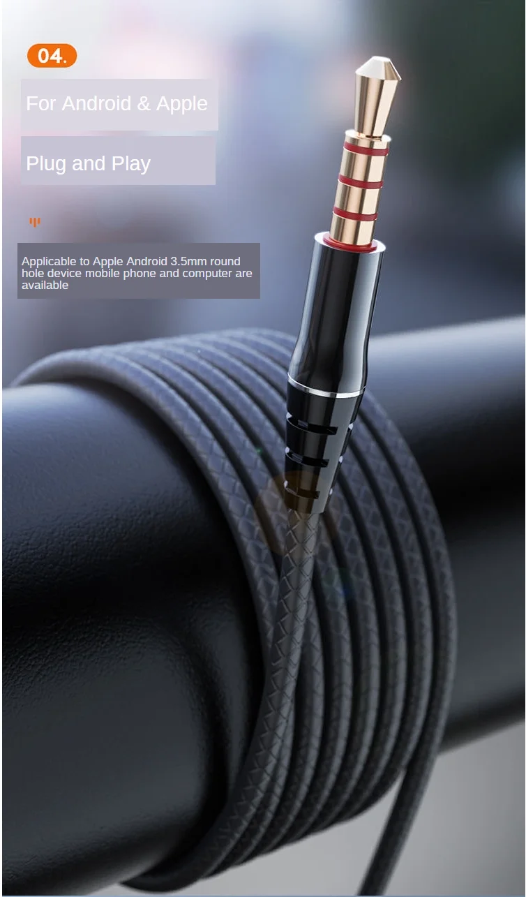 Dynamic Drivers HD Super Subwoofer HiFi Headset Wired Heavy Bass Noise Reduction Sports Earphone Gaming Earbuds