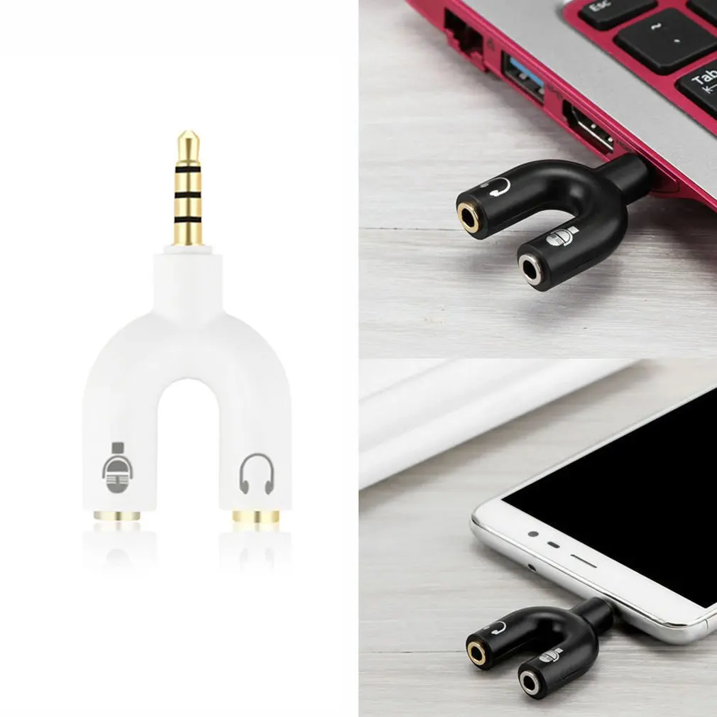 3.5mm Splitter Stereo Plug U-shape Stereo Audio Mic & Headphone Earphone Splitter Adapters for PS4 PC Laptop Ear Headset